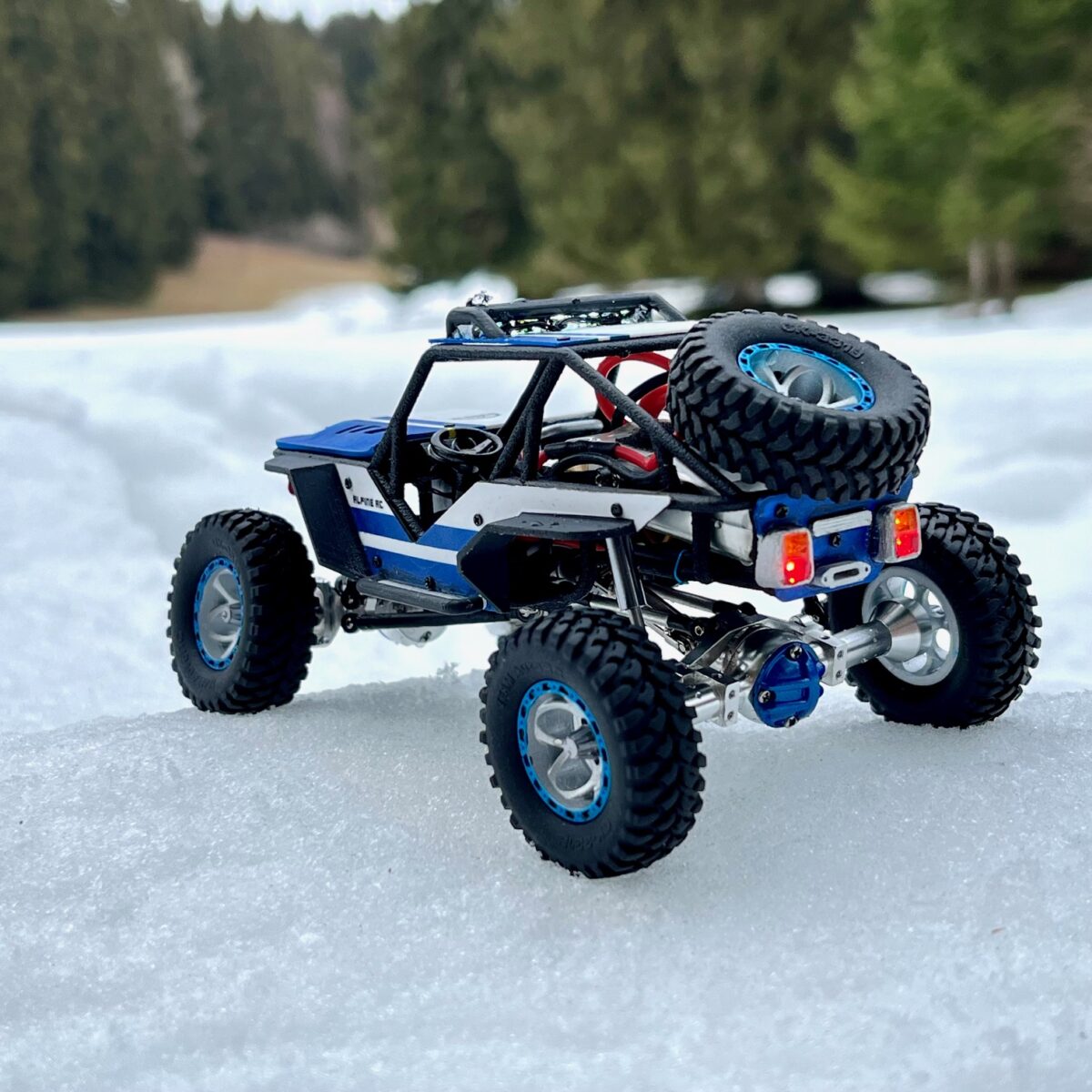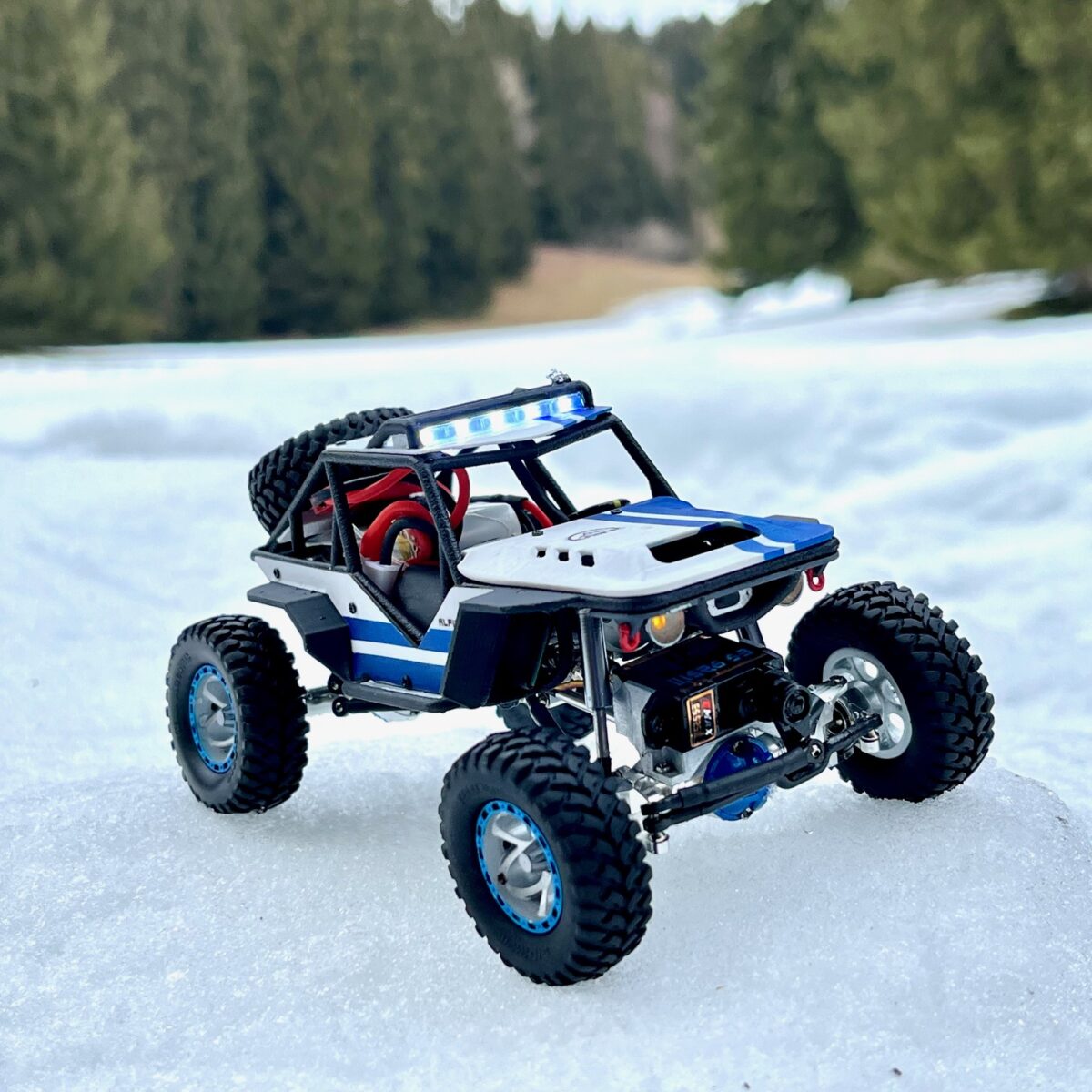 Vous pouvez alimenter vos LED avec un ESC Azure Hawker Tarsi, un système Orlandoo Hunter D4L ou un module d’éclairage fait maison (tutoriel disponible sur ma chaîne YouTube).