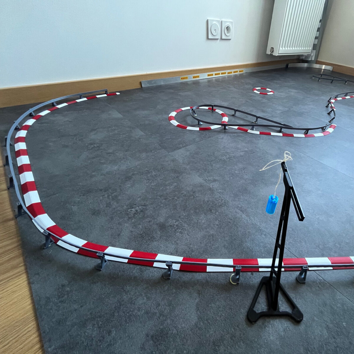 - Double-face : large surface adhésive à fixer au double-face sur la piste.