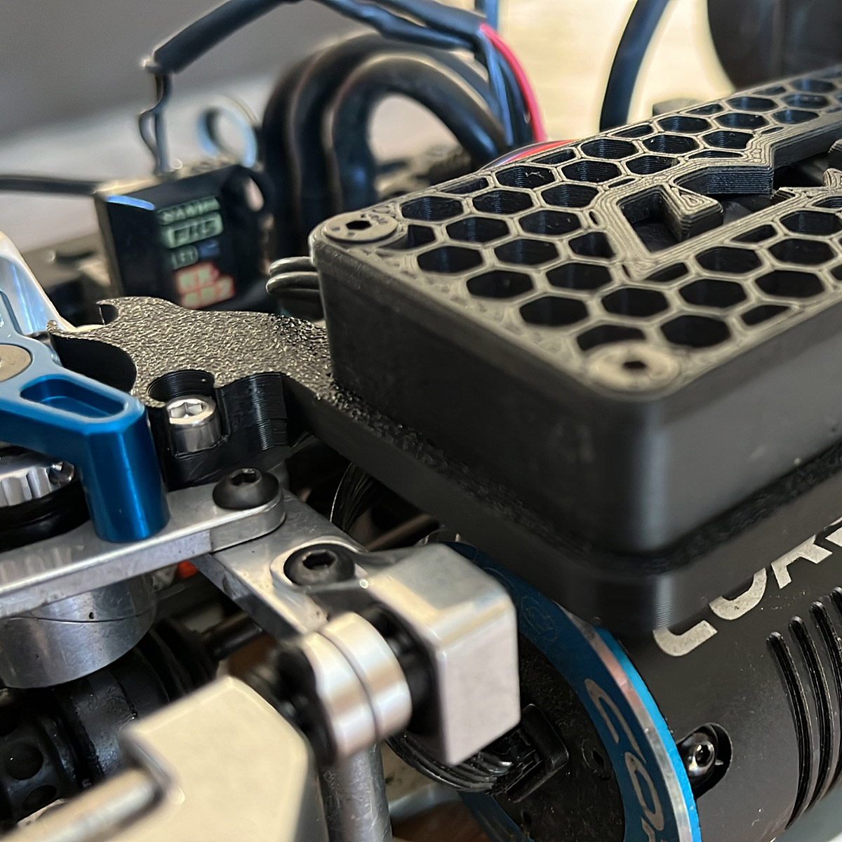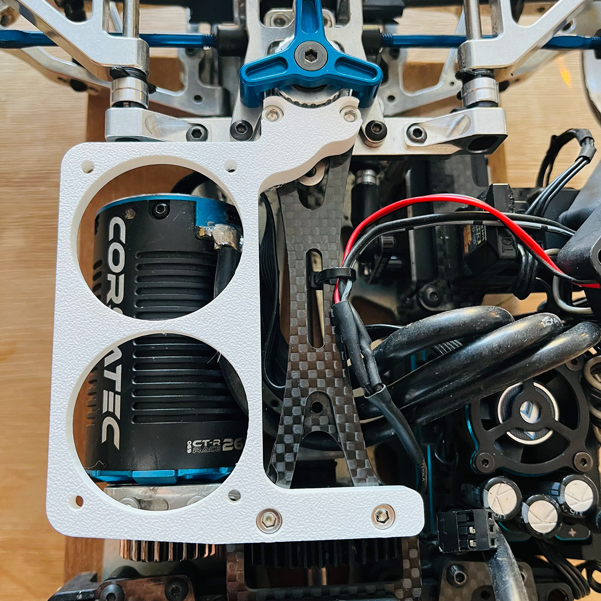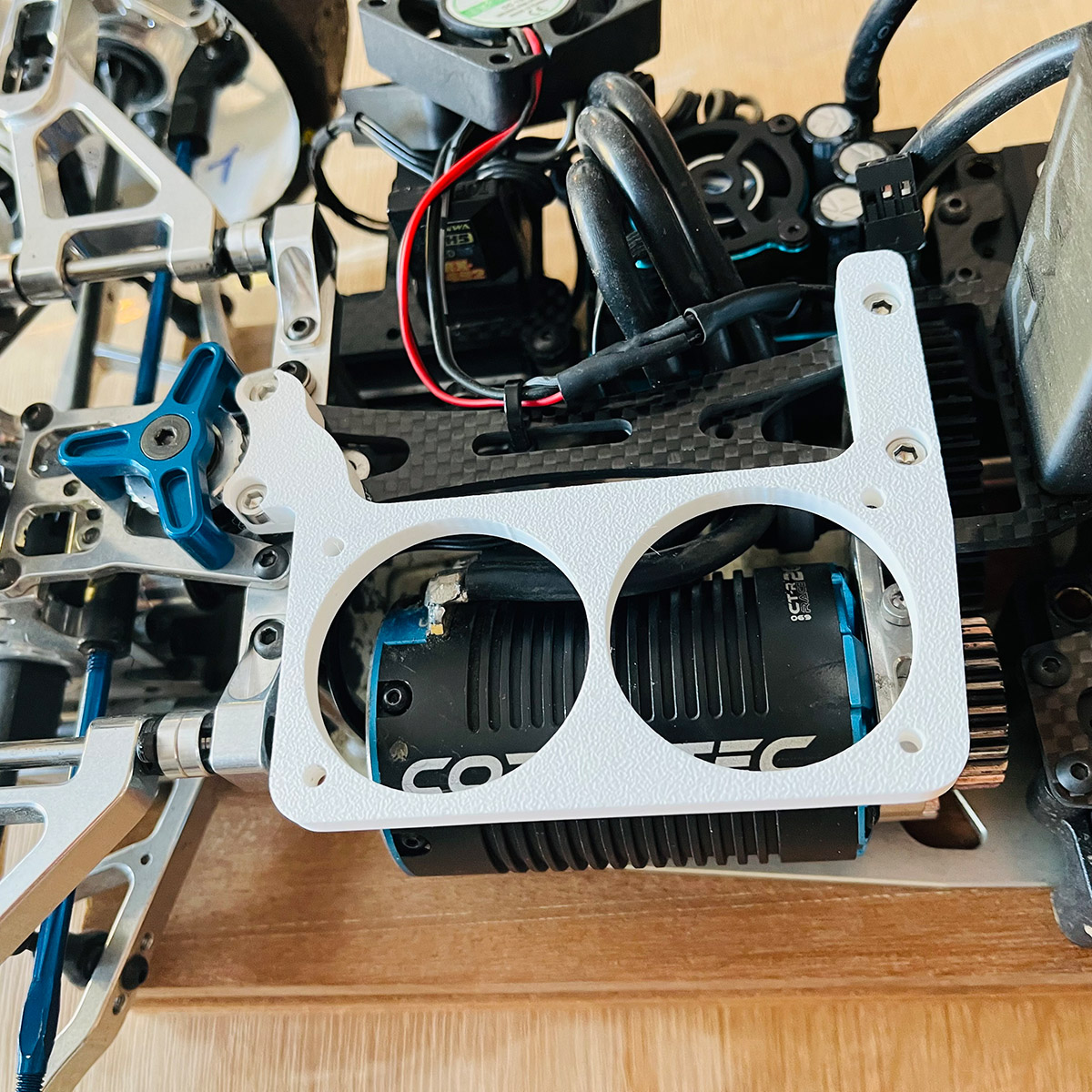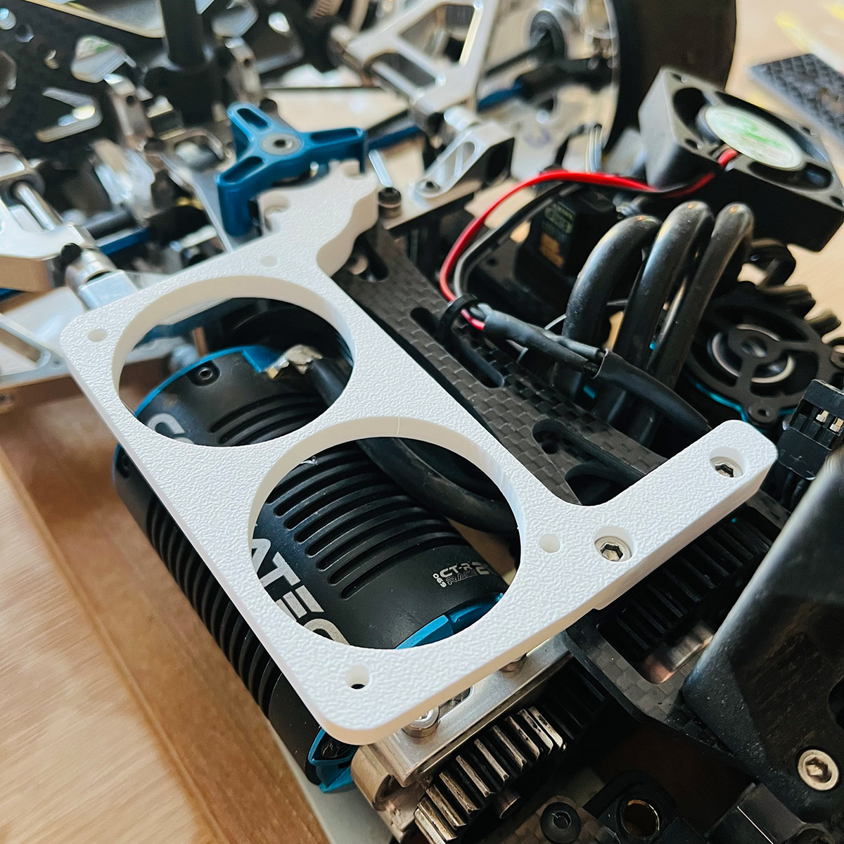 Fabriqué en ABS noir il offre légèreté et résistance, tout en dissociant la fixation du moteur de celle des ventilateurs.